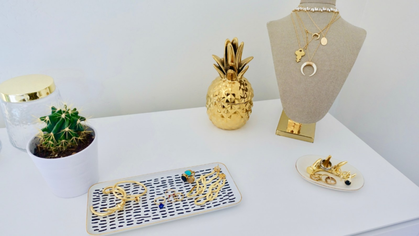 Sometimes pieces need to be kept alone out of necessity. “I have many gold dainty rings. I usually separate them into different compartments. But I spread them out so that I can see what’s inside each one. Paola says that some dainty necklaces can be worn on their own to prevent them from getting tangled. Take a look at the tabletop display to find your most popular (and easily tangled!) piece and make sure you have it handy.